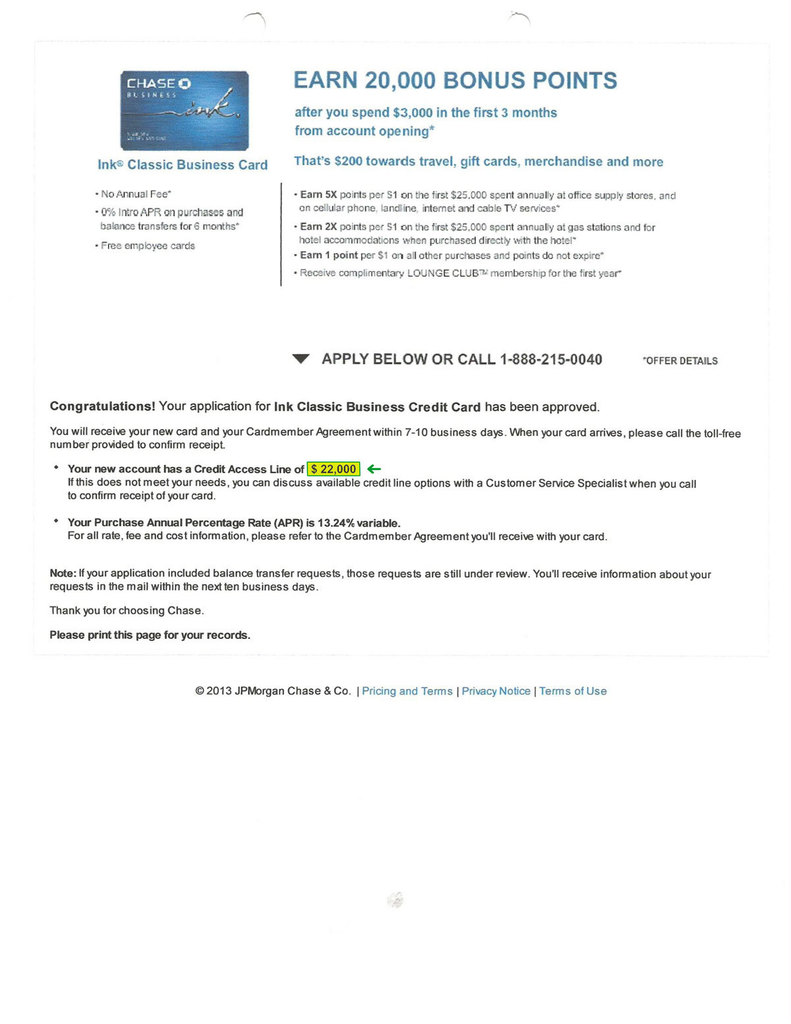 $23,000 INK CLASSIC BUSINESS APPROVAL